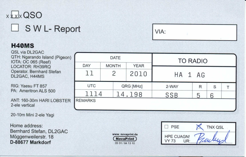 QSL of the month - April 2010: H40MS