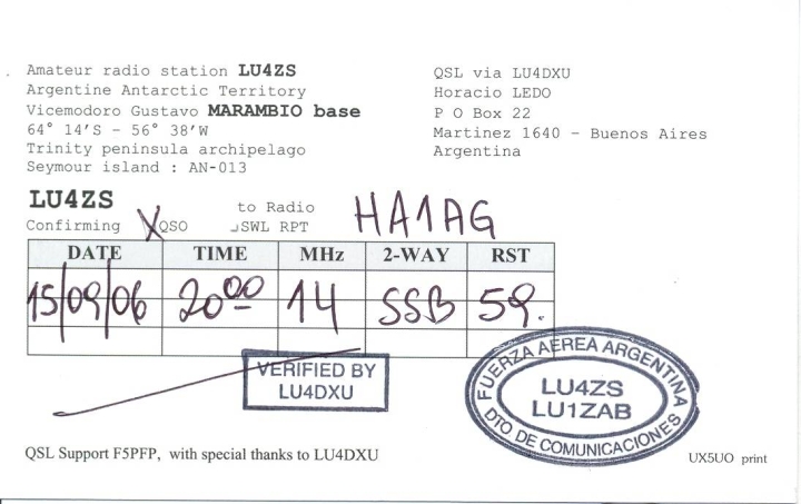 QSL of the month - October 2006: LU4ZS